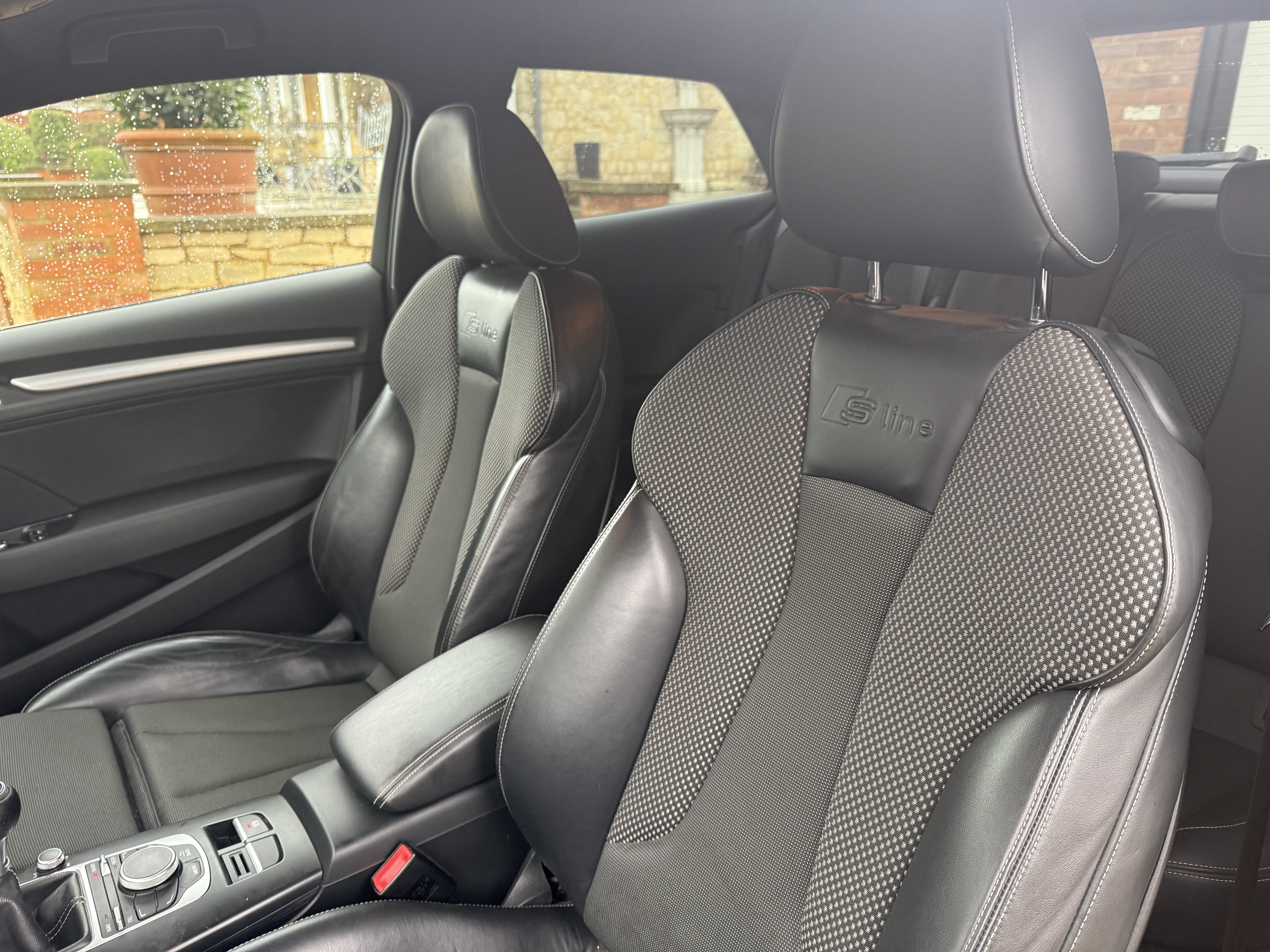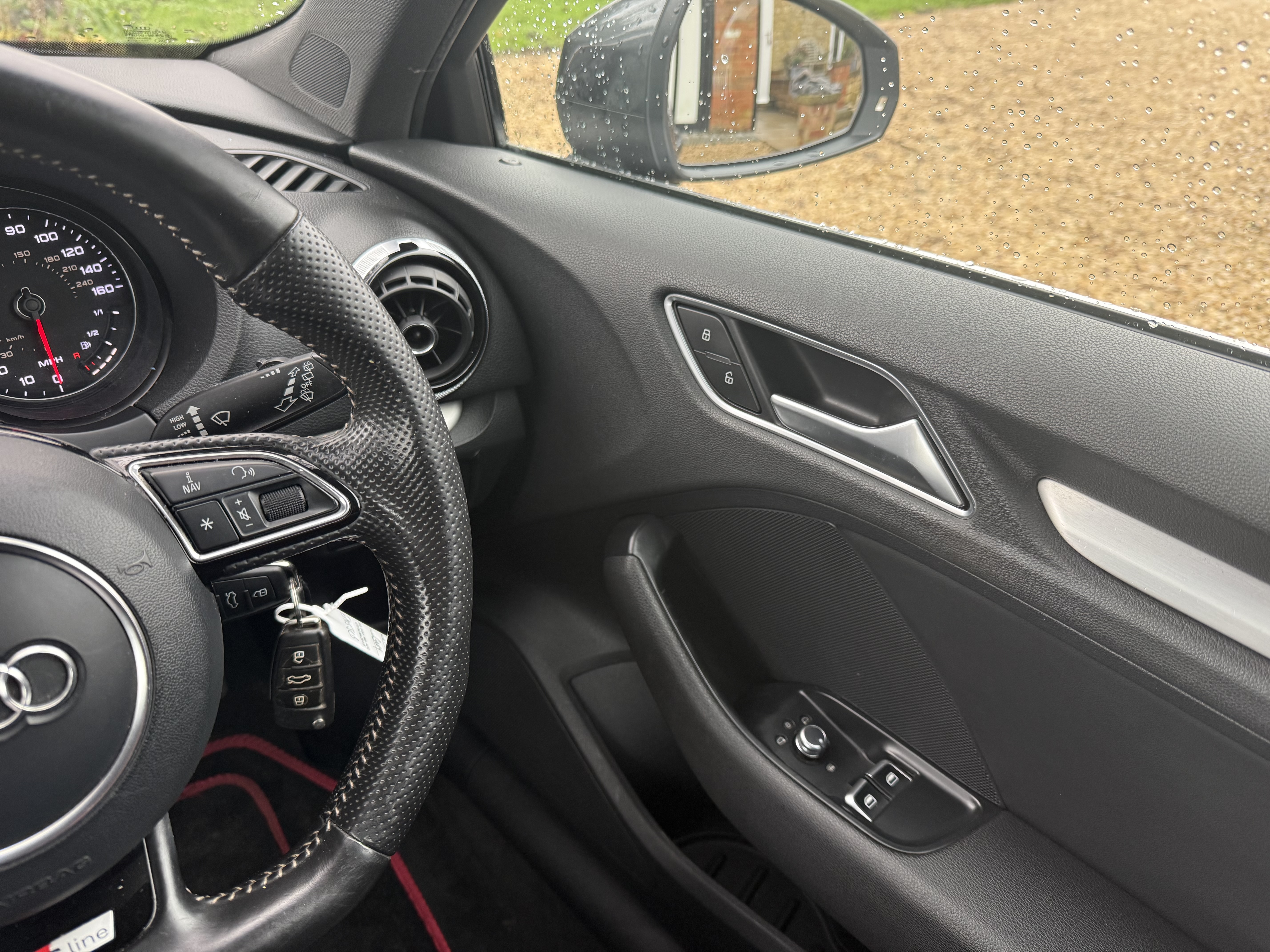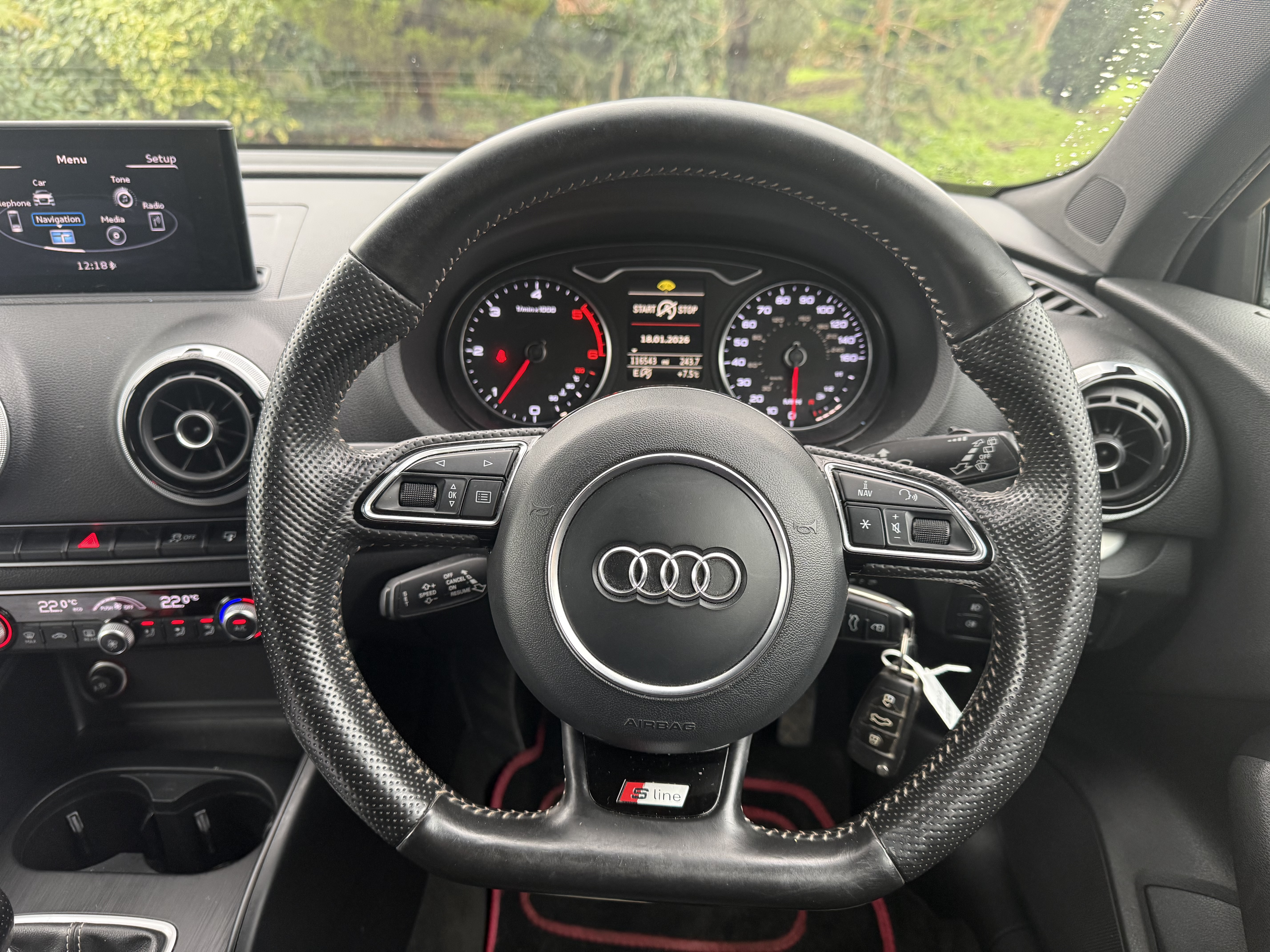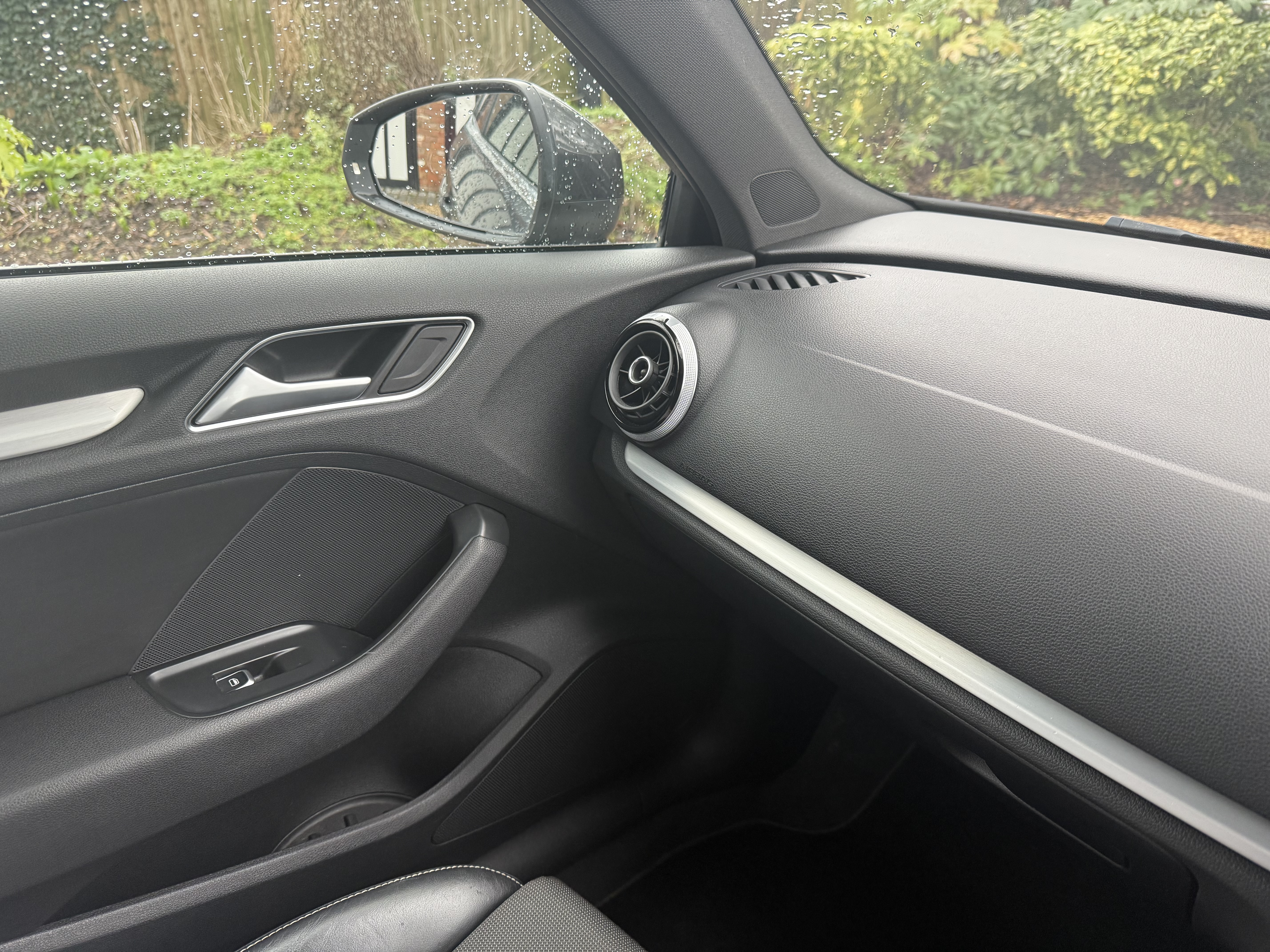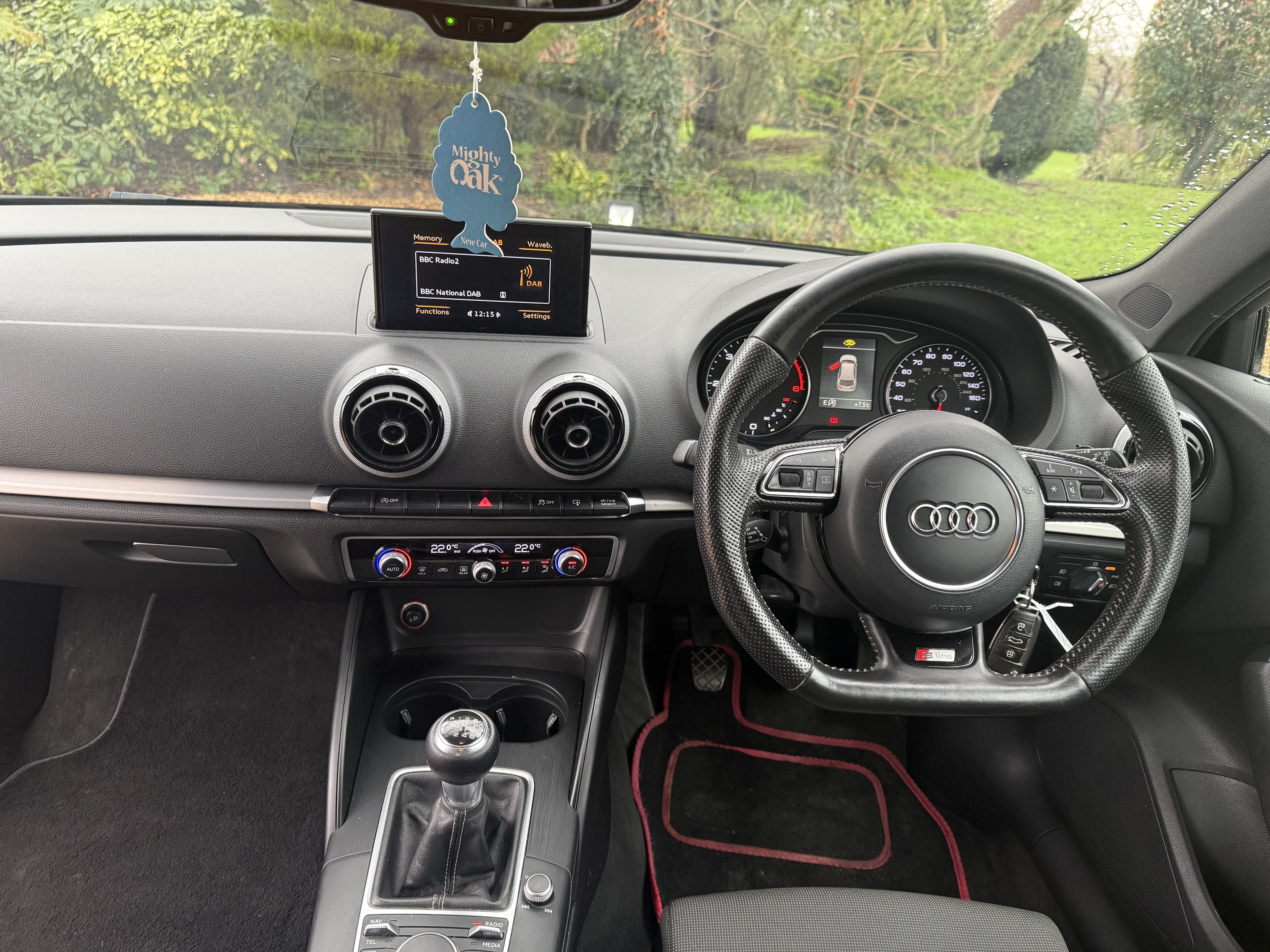 Inside, the cabin offers a premium feel throughout, featuring S Line sports seats, dual-zone electronic climate control, and brushed aluminium interior inlays. Technology includes DAB digital radio, Bluetooth connectivity, Audi Music Interface, and voice control navigation preparation.