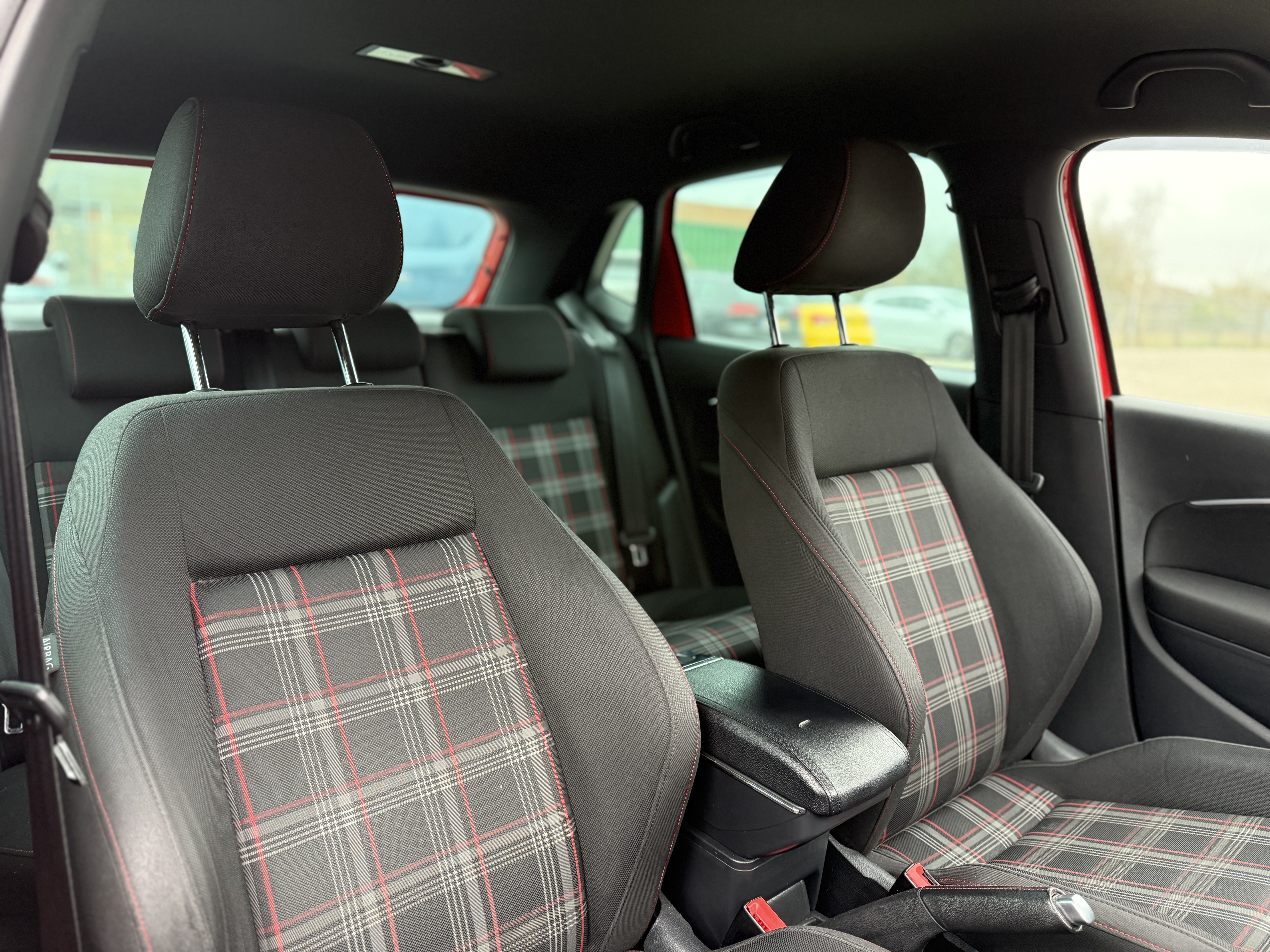 Highlights include: LED Headlights, Front and Rear Parking Sensors, Cruise Control, Composition Media System with Bluetooth, Heated and Electrically Adjustable Door Mirrors, Front Sports Seats with Height Adjustment, 17in Parabolica Alloy Wheels, GTI Styling Pack with Unique Badging and Tinted Rear Lights, Lowered Sports Suspension (approx 15mm), XDS and EDL Electronic Differential Locks, ESC with Hill Hold Control and Post-Collision Braking, Driver Alert System, Tinted Rear Glass, Stainless Steel GTI Door Sill Protectors, Black Gloss Interior Trim, Matt Chrome Interior Details, Illuminated Vanity Mirrors, 60/40 Split Folding Rear Seats, Tyre Pressure Loss Indicator, Front Fog Lights with Cornering Function, Extended Black Sill Strips and Body Coloured Rear Spoiler.
