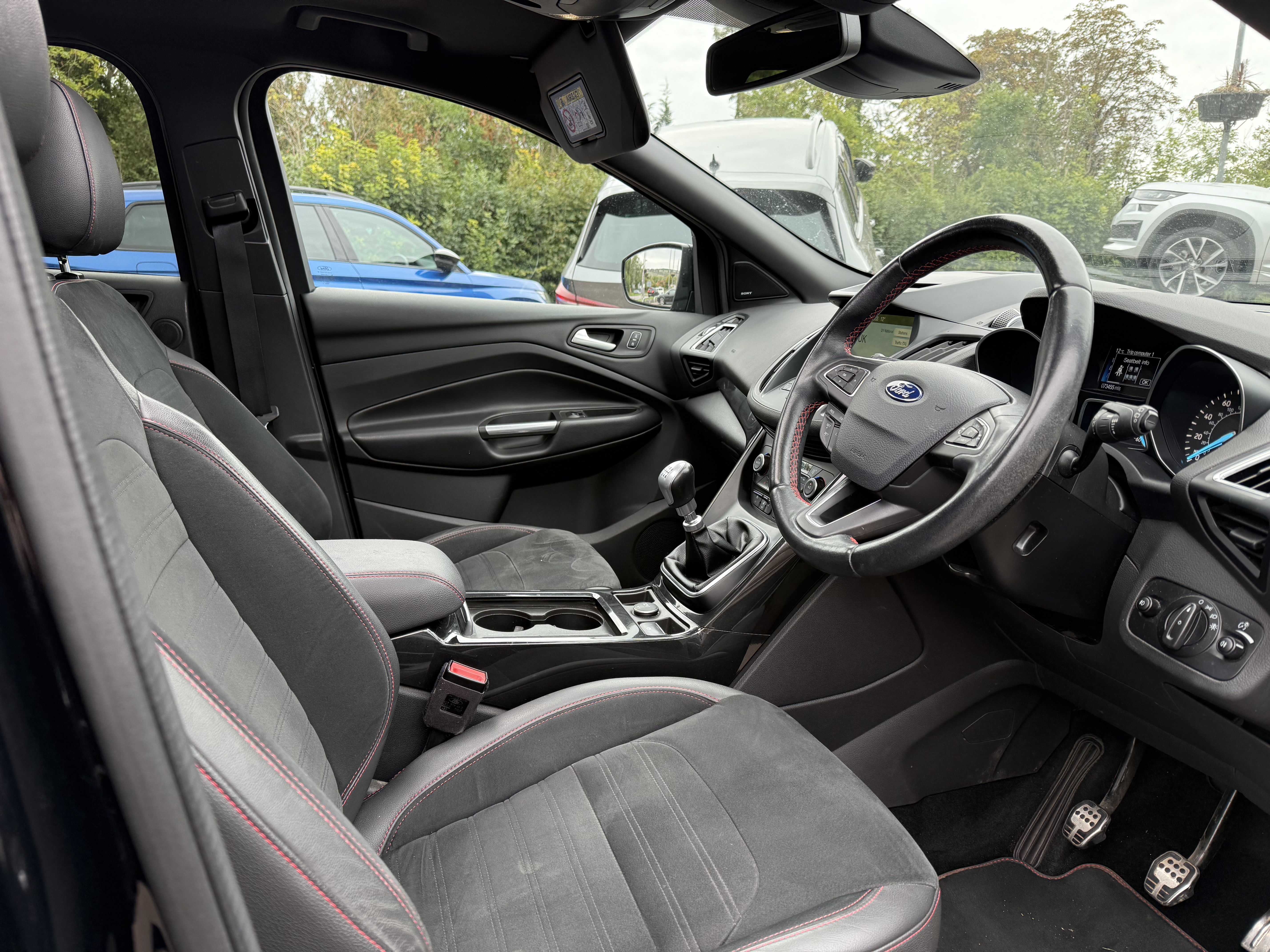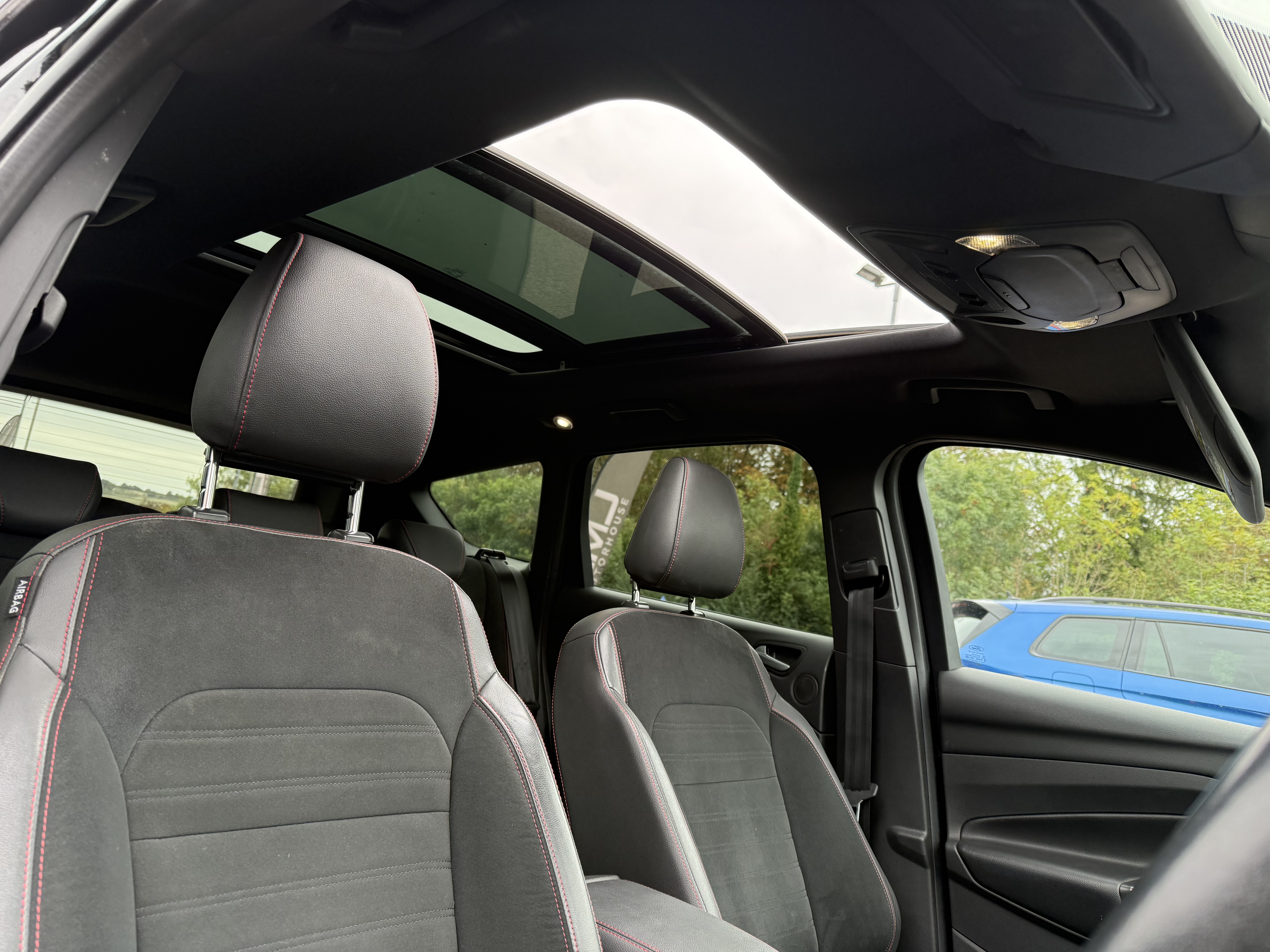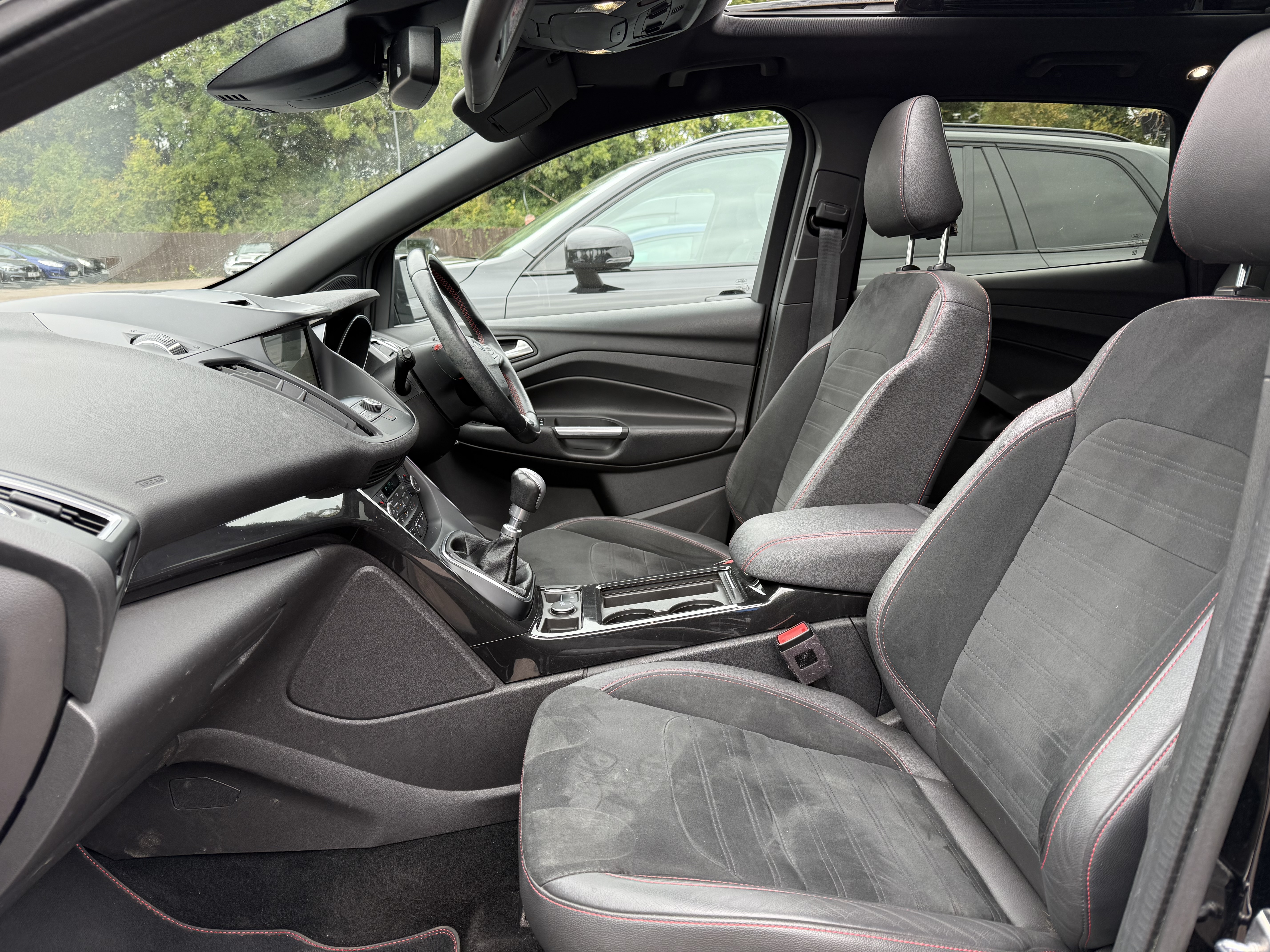 Inside, you’ll find a modern, feature-packed cabin designed for comfort and convenience, including heated front seats, dual-zone climate control, and Ford’s SYNC3 navigation system with an 8” touchscreen. The panoramic roof and ST-Line trim add a touch of sport and luxury.