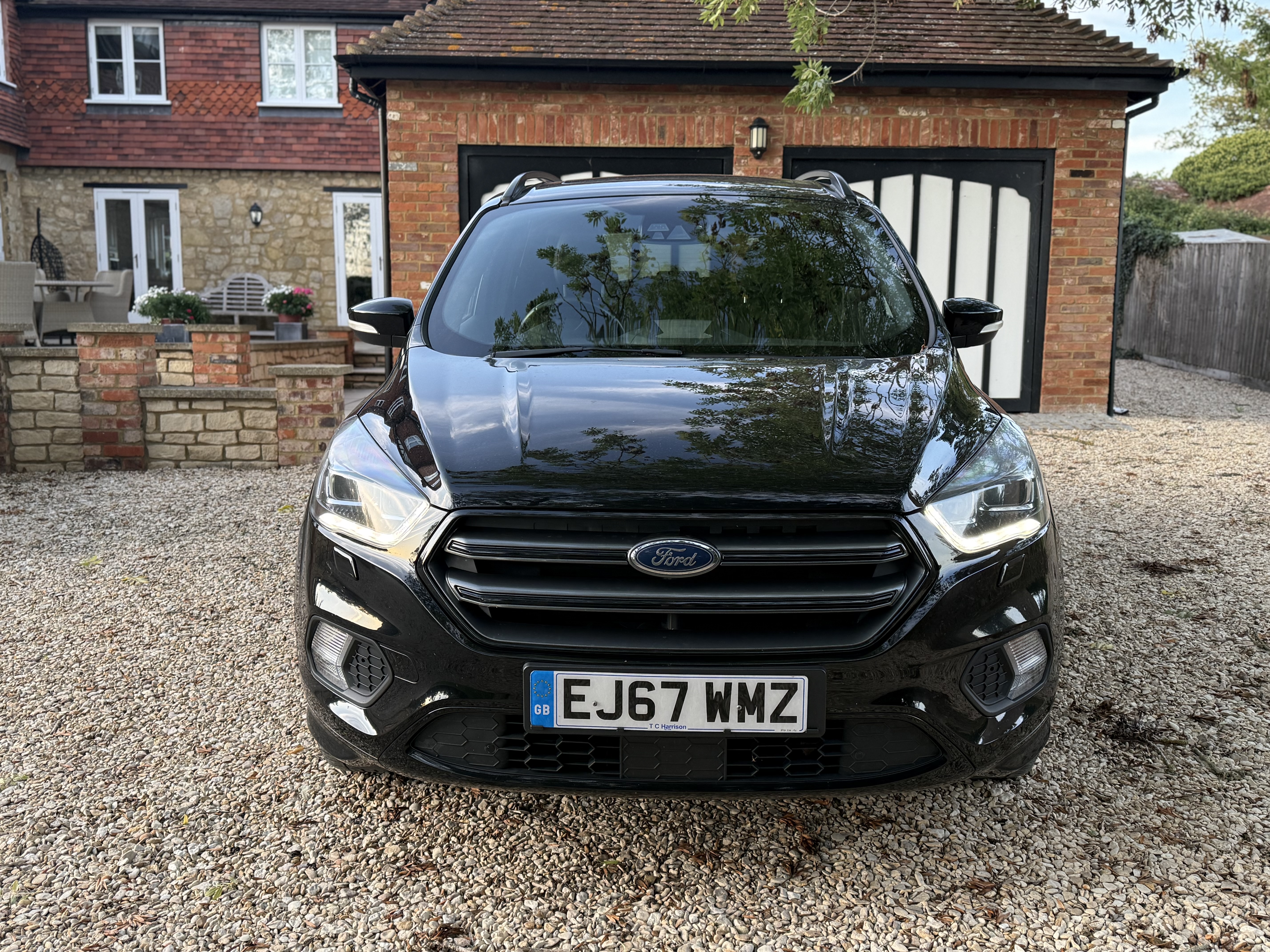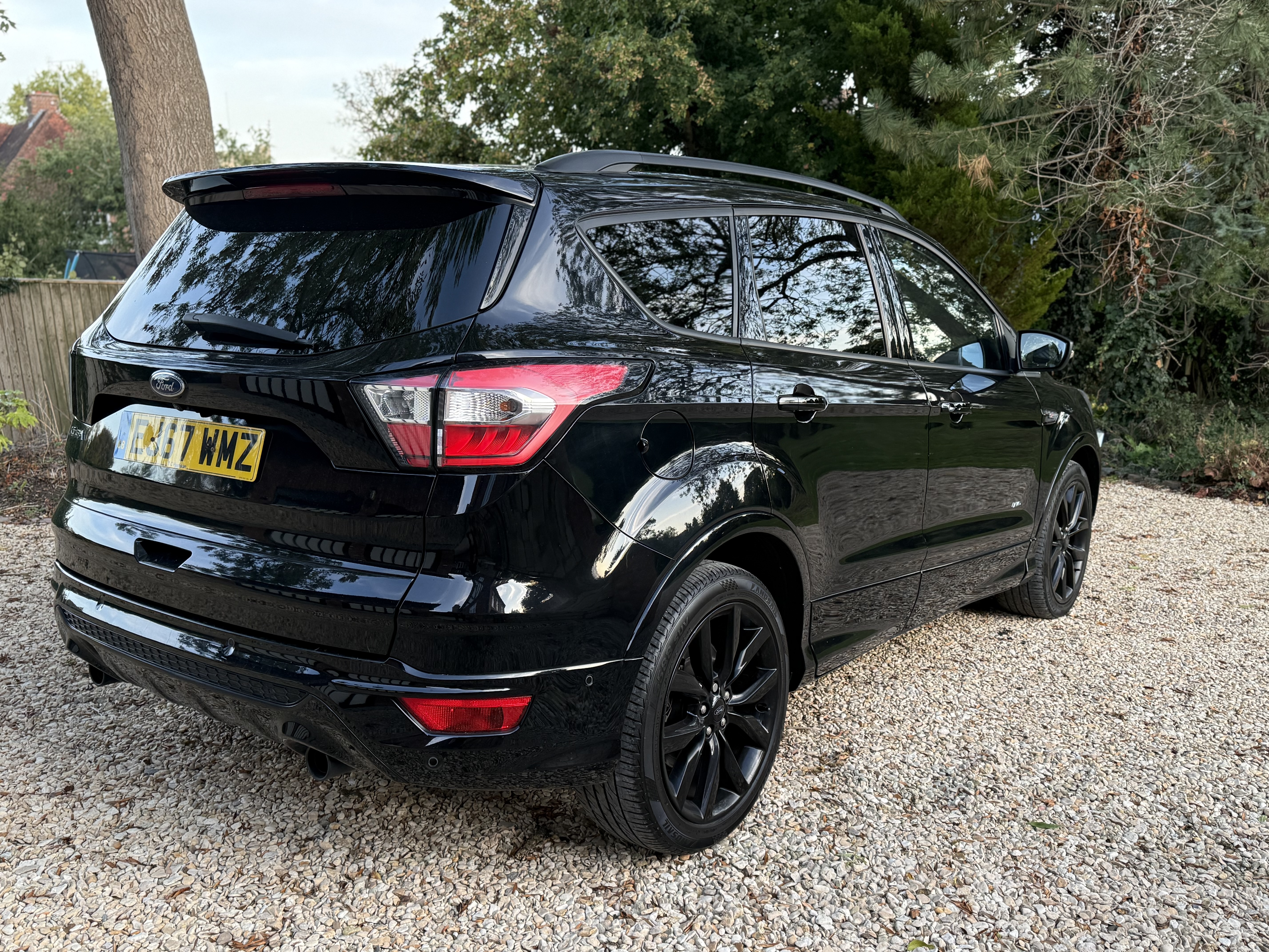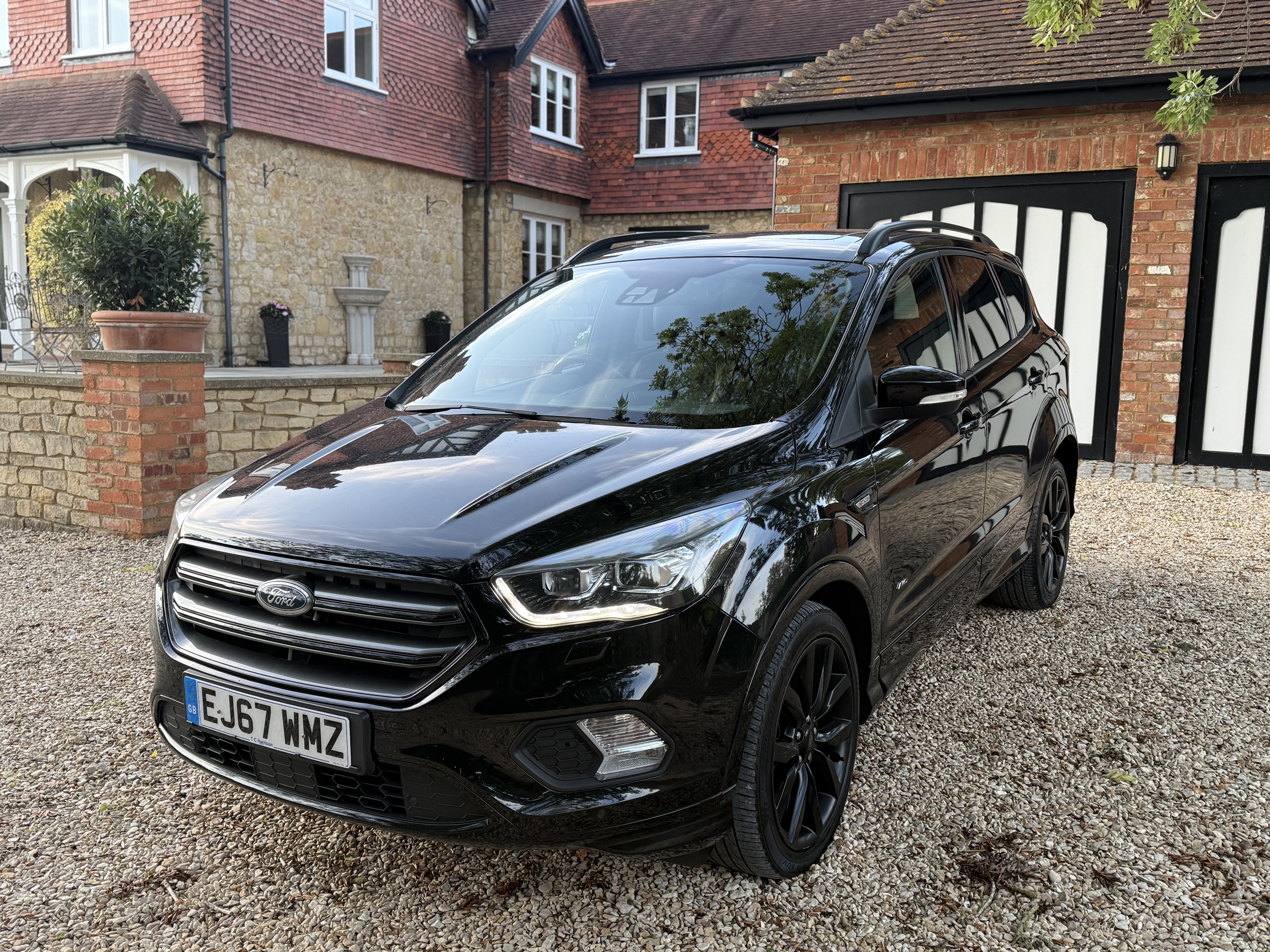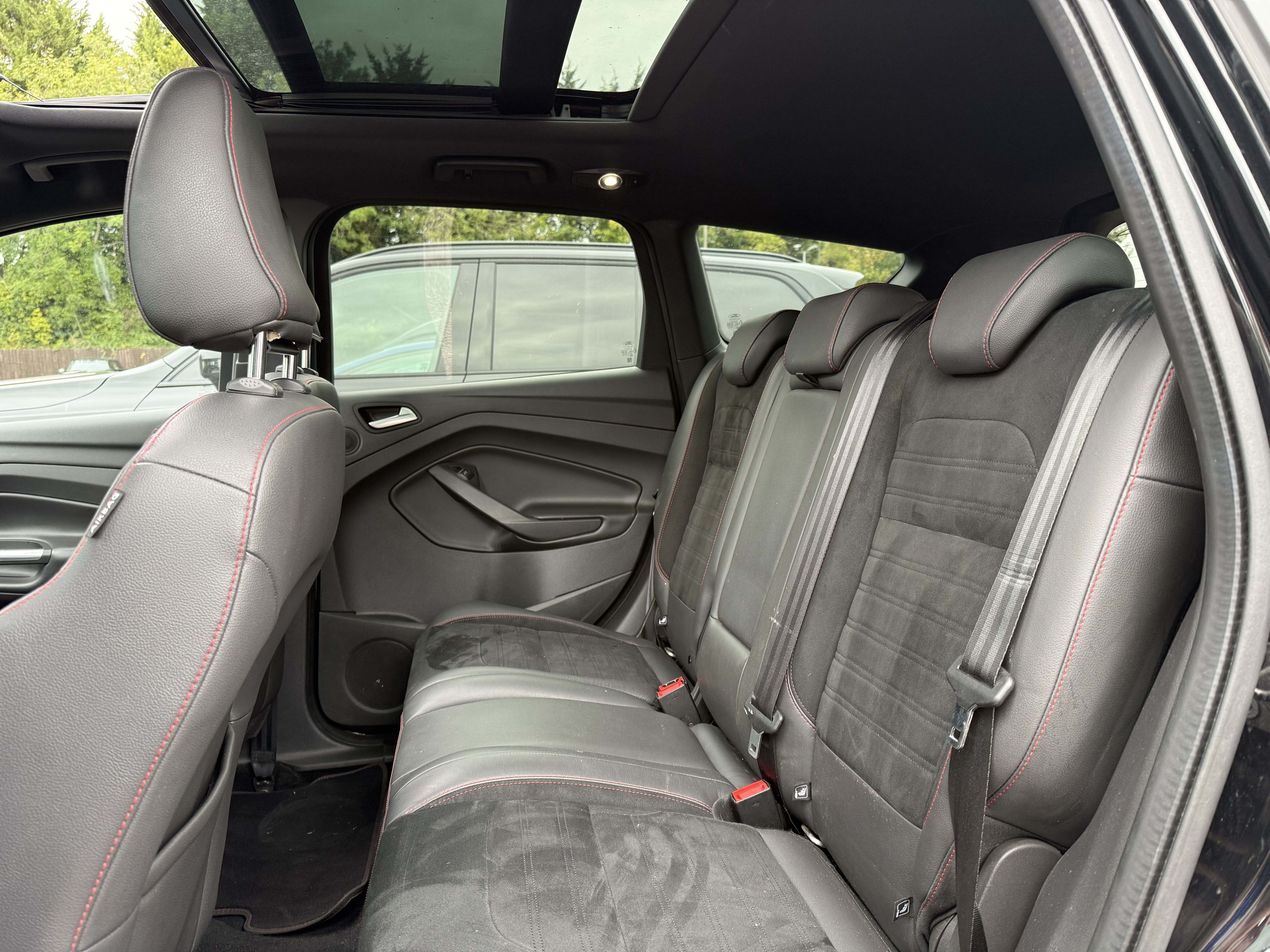 Inside, you’ll find a modern, feature-packed cabin designed for comfort and convenience, including heated front seats, dual-zone climate control, and Ford’s SYNC3 navigation system with an 8” touchscreen. The panoramic roof and ST-Line trim add a touch of sport and luxury.